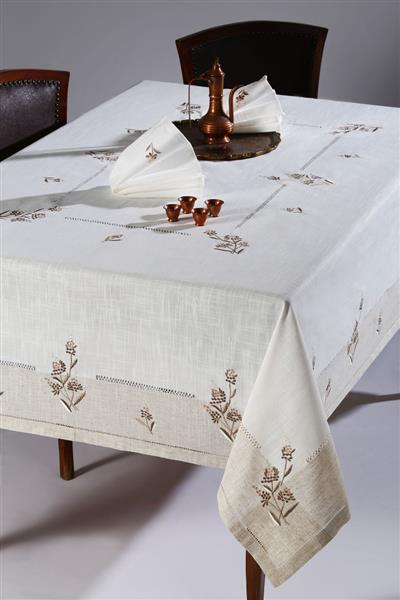 Τραπεζομάντηλο με 2 σειρές αζούρ και κέντημα. Το τραπεζομάντηλο συνοδεύεται από 8 πετσέτες φαγητού με κέντημα.