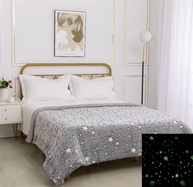 Παιδική φωσφοριζέ κουβέρτα με sherpa star (170cm x 220cm) γκρί