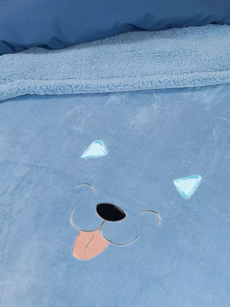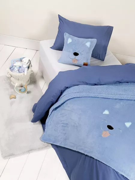 Η παιδική κουβέρτα tony έχει ένα minimal και απίστευτα χαριτωμένο σχεδιασμό. h κουβέρτα έχει ένα ένα φωτεινό μπλε χρώμα και ξεχωρίζει για το αξιολάτρευτο, κεντητό σχέδιο ενός χαμογελαστού σκύλου στην μπροστινή όψη. Έχει στρογγυλεμένα μάγουλα, κλειστά μάτια, μια μικρή ροζ γλώσσα που βγαίνει παιχνιδιάρικα, και γαλάζια αυτιά, δημιουργώντας ένα ζωντανό και φιλικό προσωπάκι. Χαρίστε στο παιδί σας την πιο ζεστή και διασκεδαστική αγκαλιά με την παιδική κουβέρτα "tony", σχεδιασμένη για διπλή απόλαυση και άνεση. Συνδυάστε τη και με το ασορτί μαξιλαράκι, για ένα ακόμα πιο όμορφο και παιχνιδιάρικο αισθητικό αποτέλεσμα!