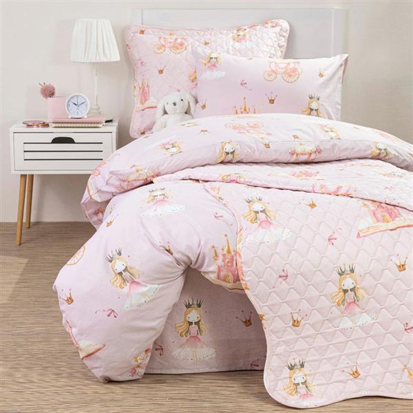 Παπλωματοθήκη μονή από ύφασμα μερσεριζέ, 144 κλωστών, 100% βαμβακερό, με φερμουάρ, εμπριμέ, με παιδικό σχέδιο με πριγκίπισσες.