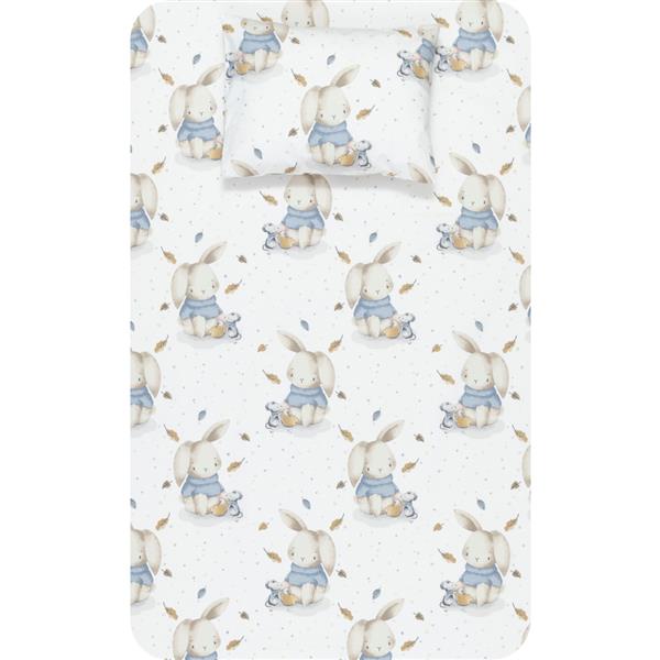 Σετ σεντόνι μονό με μαξιλαροθήκη, από ύφασμα μερσεριζέ, 160 κλωστών, 100% βαμβακερό, εμπριμέ, σχέδιο λαγουδάκι. Συνδυάστε με κατωσέντονα Solid ή Mix and Match.