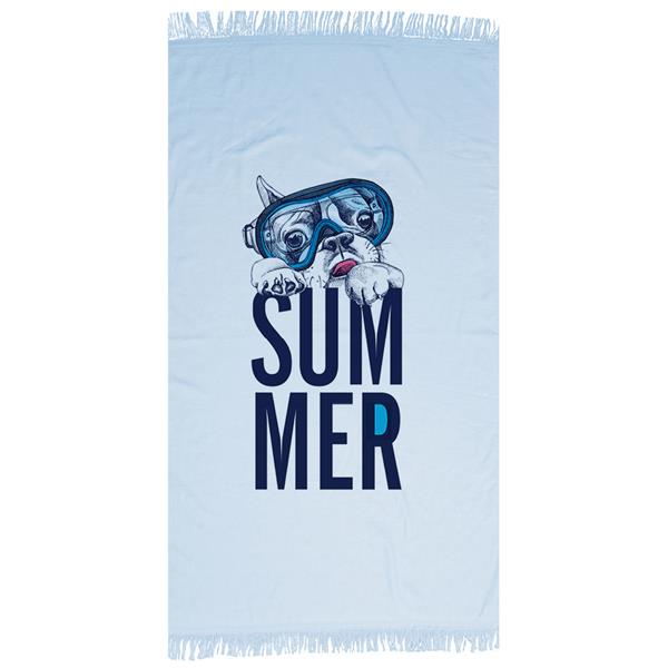 Πετσέτα θαλάσσης παρεό φροτέ,100% βαμβακερή, με κρόσσια, σχέδιο μπουλντόγκ.