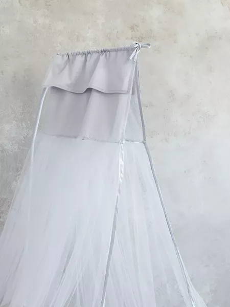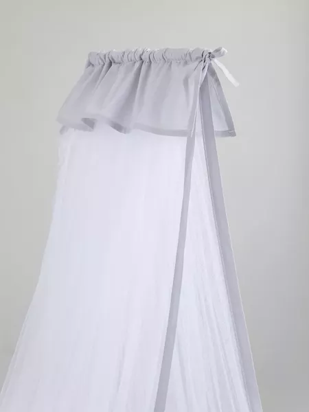 Η κουνουπιέρα nappy light gray έχει βαμβακερό γκρι βολάν στην κορυφή και ίδιο γκρι φαρδύ ρέλι περιμετρικά, που δένει αρμονικά με την λευκή κουνουπιέρα. Ταιριάζει τόσο σε αγοράκια όσο και σε κοριτσάκια, για μια φωτεινή και γλυκιά αίσθηση στην κούνια και στο βρεφικό δωμάτιο. Το απλό της σχέδιο είναι κατάλληλο για να ταιριάξει εύκολα με οποιαδήποτε διακόσμηση δωματίου και να δώσει ένα αρμονικό αποτέλεσμα που θα βοηθήσει το μωρό να χαλαρώσει και να του χαρίσει έναν ήρεμο ύπνο.