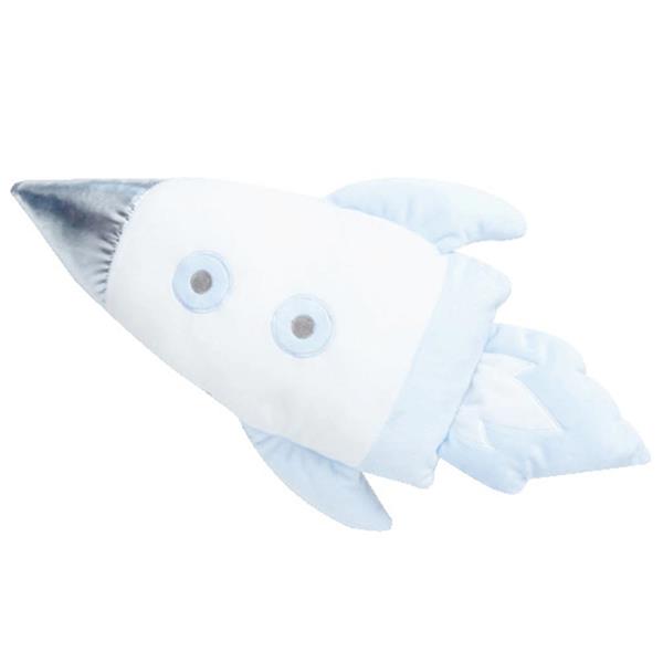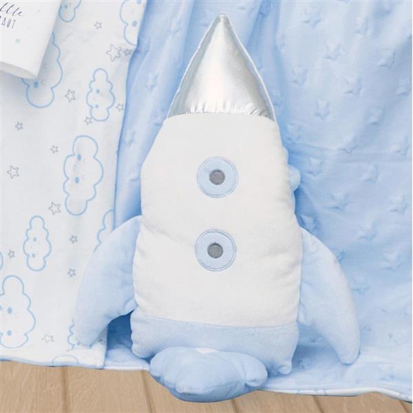Διακοσμητικό κουκλάκι με κουβερτάκι αγκαλιάς από ύφασμα φλάνελ, 100% πολυέστερ, χρώμα λευκό-σιέλ, σχέδιο πύραυλος.