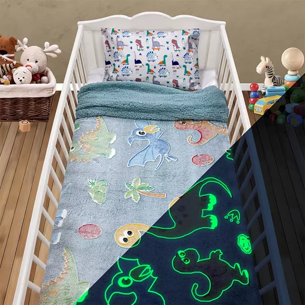Ανακαλύψτε την απόλυτη προσθήκη στο βρεφικό δωμάτιο με την κουβέρτα Volcano που διαθέτει ένα μοναδικό φωσφοριζέ σχέδιο δεινοσαύρων. Κατασκευασμένη από υλικά υψηλής ποιότητας, απαλά και ζεστά, η κουβέρτα Volcano προσφέρει άνεση και χαρά στον μικρό σας εξερευνητή κατά τη διάρκεια του ύπνου. Οι φωσφοριζέ δεινόσαυροι ζωντανεύουν στο σκοτάδι, δημιουργώντας μια μαγευτική ατμόσφαιρα που θα κάνει τον ύπνο ακόμα πιο διασκεδαστικό. Η κουβέρτα εσωτερικά διαθέτει απαλή sherpa.