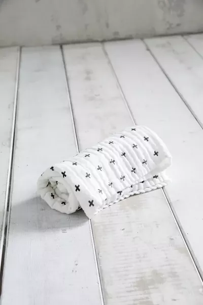 Η βαμβακερή κουβέρτα hush έχει μινιμαλιστικό γεωμετρικό μοτίβο και όμορφη αντίθεση με χρωματισμούς λευκού και γκρι χρώματος. Ταιριάζει υπέροχα στο αγορίστικο και το κοριτσίστικο βρεφικό δωμάτιο και αποτελεί μια πολύ μοντέρνα επιλογή που θα ξεχωρίσει από τις συνηθισμένες, φέρνοντας χαρακτήρα και εκλεπτυσμένη αισθητική στο χώρο. Προσφέρεται σε δύο διαστάσεις, για το λίκνο και για την κούνια.