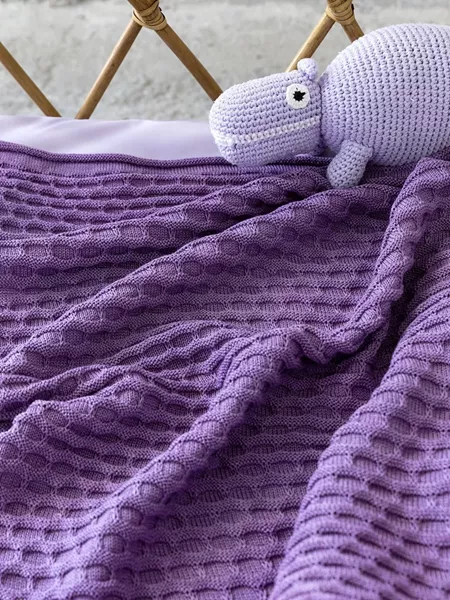 Η κουβέρτα ribbon lilac έχει υπέροχο λιλά χρώμα και ανάγλυφη υφή πλεκτού που αναδεικνύει περισσότερο το χρώμα της. Το λιλά χρώμα είναι το αγαπημένο των μικρών κοριτσιών. Θα ταιριάξει αμέσως στο δωμάτιο της μικρής σας πριγκίπισσας φέρνοντας ζεστασιά και μια γλυκιά χειμωνιάτικη διάθεση στον χώρο.