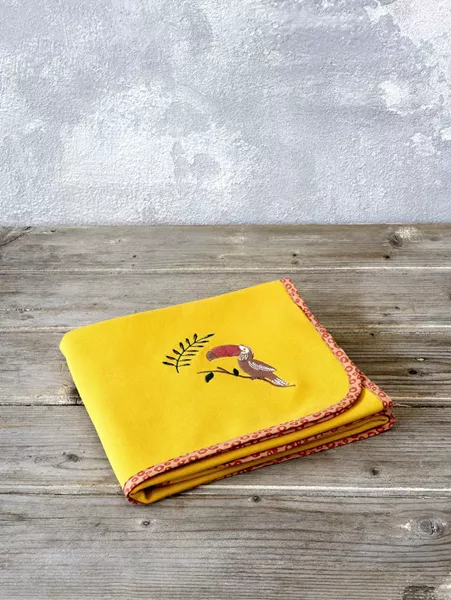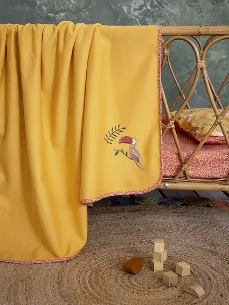 Η κουβέρτα leobaby φέρνει τα χαριτωμένα ζωάκια της ζούγκλας στο βρεφικό δωμάτιο. Έχει υπέροχο κεντητό σχέδιο με το πουλάκι toucan, τυπωτό ρέλι περιμετρικά και ζωηρές αποχρώσεις του μουσταρδί και του πορτοκαλί. Δημιουργεί μια παιχνιδιάρικη αίσθηση στο βρεφικό δωμάτιο και χαρίζει στο μωράκι σας όμορφες στιγμές χαράς, καθώς θα ανακαλύπτει τα γλυκά ζωάκια και θα μοιράζεται μαζί σας τον ενθουσιασμό του. Συνδυάστε τη με ασορτί σεντόνια και πάντα για να δημιουργήστε ονειρεμένη ατμόσφαιρα στο δωμάτιο του μωρού σας.
