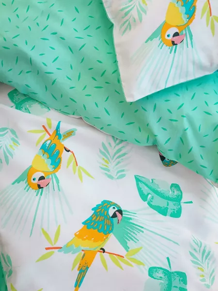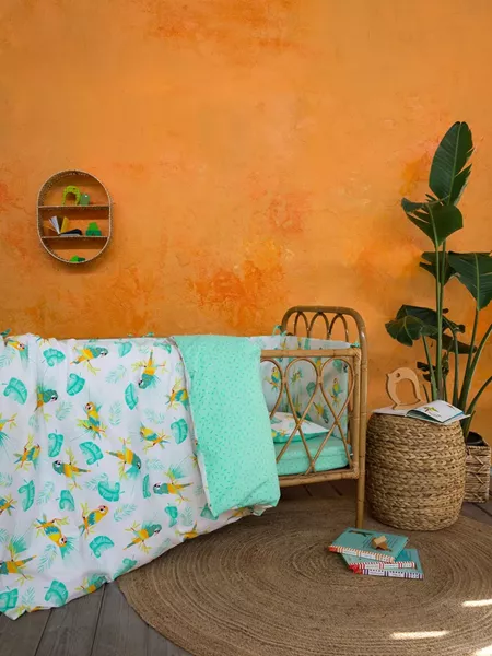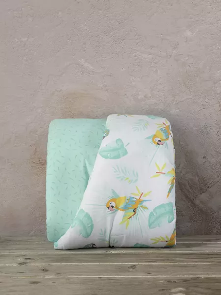 Το κουβερλί κούνιας macaw θα φέρει μια τροπική αίσθηση στο βρεφικό δωμάτιο. Το τυπωτό του σχέδιο με όμορφους παπαγάλους Μακάο και φυλλωσιές της ζούγκλας θα δημιουργήσει μια χαρούμενη αίσθηση στο δωμάτιο του μωρού σας. Ένα πρωτότυπο σχέδιο που θα χαρίσει στιγμές γέλιου στο μικρό σας καθώς θα ανακαλύπτει τα ζωάκια. Συνδυάστε το με ασορτί σεντόνια και πάντα για να δημιουργήσετε ένα υπέροχο βρεφικό δωμάτιο.