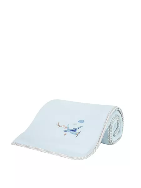 Η βρεφική κουβέρτα boy's world είναι μια όμορφη προσθήκη στο βρεφικό δωμάτιο. Σε απαλό γαλάζιο χρώμα και διακοσμημένη με όμορφο κεντητό αεροπλανάκι, προσφέρει μια γλυκιά ζεστασιά και χαλάρωση που είναι απαραίτητη για ένα γαλήνιο ύπνο του μωρού σας. Περιμετρικά έχει τελείωμα με διακριτικό βαμβακερό ρέλι και οι γωνίες της είναι στρογγυλεμένες ώστε να μην ενοχλούν. Συνδυάστε τη με ασορτί σεντόνια και πάντα για να δημιουργήσετε αρμονία στο βρεφικό δωμάτιο.
