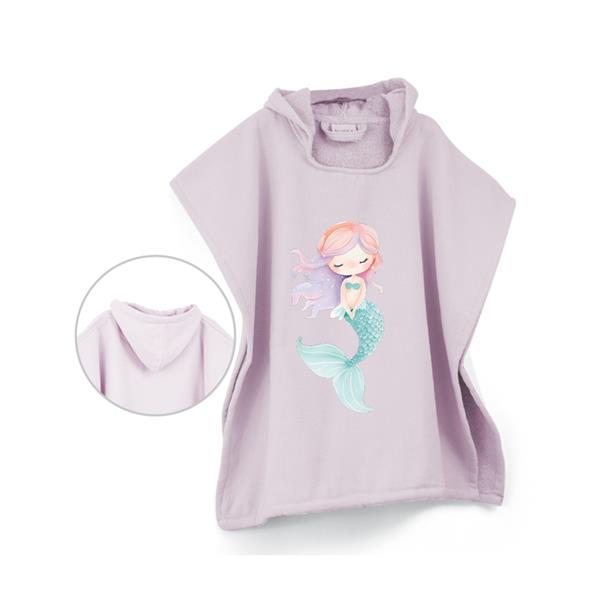 Πετσέτα θαλάσσης πόντσο φροτέ,100% βαμβακερή, με κουκούλα, σχέδιο γοργόνα.
