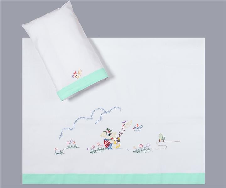 βαμβακερό παιδικό σεντόνι με χειροποίητο κέντημα και μαξιλαροθήκη