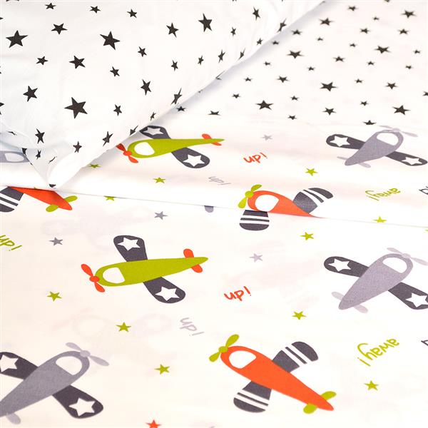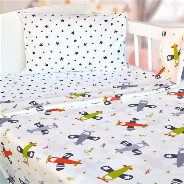 Σετ σεντόνια Avion Star Grey από τη νέα βρεφική συλλογή της εταιρείας Lino Home. Το σετ Avion Star έχει πάνω του χαριτωμένα αεροπλανάκια και αστεράκια σε ξεχωριστούς χρωματικούς συνδυασμούς. Η νέα bebe συλλογή της εταιρείας Lino Home, είναι διακοσμημένη με τα πιο όμορφα σχέδια βγαλμένα από όνειρο. Απαλά χρώματα, κομψά σχέδια και η ασύγκριτη ποιότητα της εταιρείας Lino Home, συνδυάζονται για να χαρίσουν στο μωρό σας μοναδικές στιγμές ξεκούρασης στο βρεφικό κρεβατάκι. Τα τεμάχια που απαρτίζουν το σετ είναι κατασκευασμένα από 100% απαλό βαμβακερό ύφασμα και ανεξίτηλα χρώματα προκειμένου να διασφαλίσουν έναν υγιεινό ύπνο στο μωρό σας. Το σετ αποτελείται από ένα πανωσέντονο και ένα κατωσέντονο διάστασης 120Χ170 και μία μαξιλαροθήκη 30Χ40. Προτείνεται πλύσιμο στους 40oC και σιδέρωμα σε μέτριες θερμοκρασίες. Απαγορεύεται η χρήση χλωρίου ή λευκαντικού.