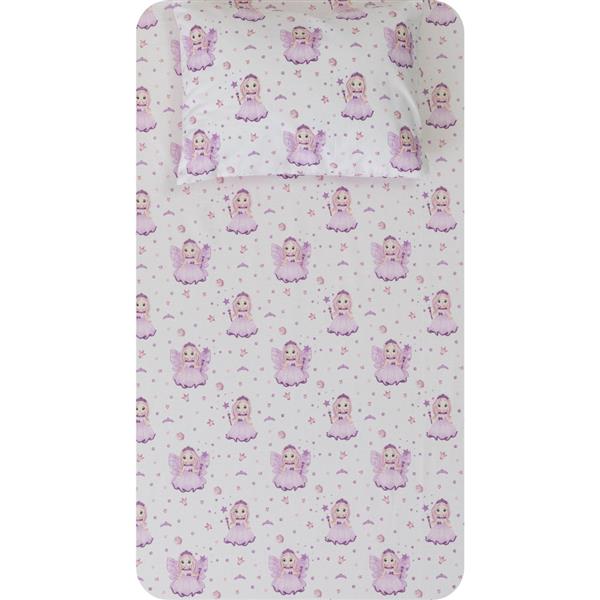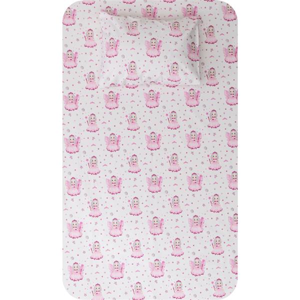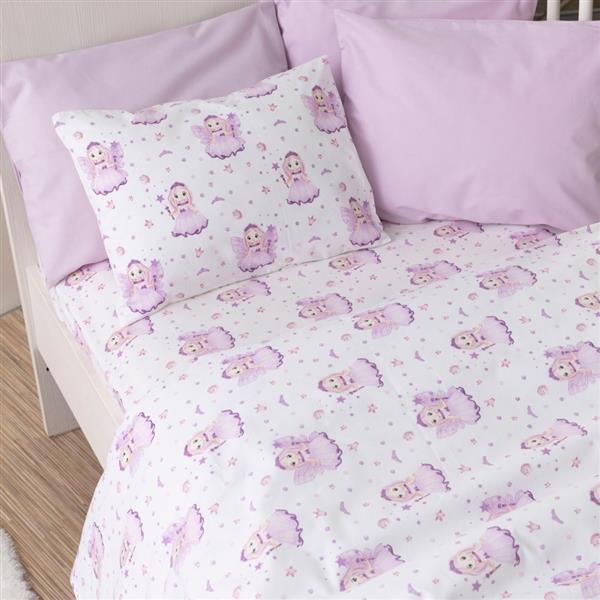 Σετ σεντόνια κούνιας με μαξιλαροθήκη από ύφασμα μερσεριζέ, 160 κλωστών, 100% βαμβακερό, εμπριμέ, σχέδιο νεράιδα.