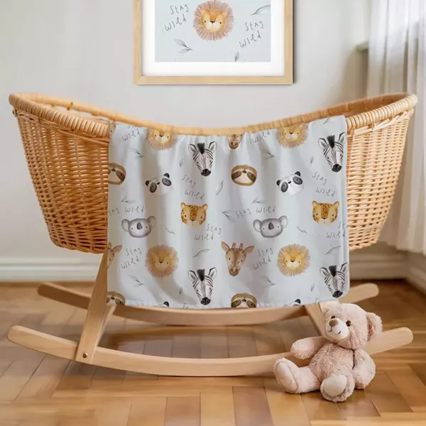 Σετ 2 σεντόνια λίκνου (ιδίου χρώματος) από ύφασμα μερσεριζέ, 160 κλωστών, 100% βαμβακερό, εμπριμέ, σχέδιο ζώα της ζούγκλας.