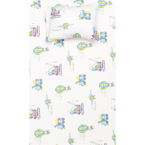 Σετ σεντόνια κούνιας με μαξιλαροθήκη από ύφασμα φανέλα, 100% βαμβακερό, εμπριμέ, χρώμα λευκό-τυρκουάζ, σχέδιο γερανός.