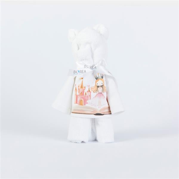 Πετσέτα προσώπου, από ύφασμα φροτέ πενιέ, 100% βαμβακερό, μονόχρωμο, με ψηφιακή εκτύπωση, σχέδιο πριγκίπισσα, σε συσκευασία/σχήμα αρκουδάκι.Διατίθεται σε 2 χρώματα.