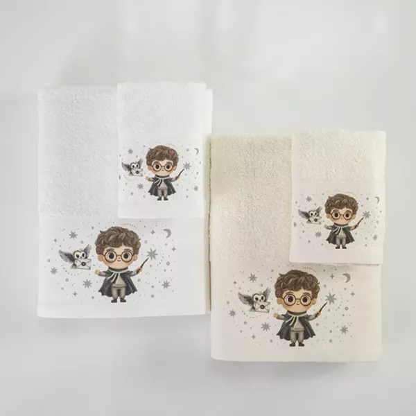 Σετ πετσέτες 2 τεμαχίων, μπάνιου και χειρός, από ύφασμα φροτέ πενιέ, 100% βαμβακερό, μονόχρωμο, εκρού, με ψηφιακή εκτύπωση, σχέδιο μάγος.Διατίθεται σε 2 χρώματα.