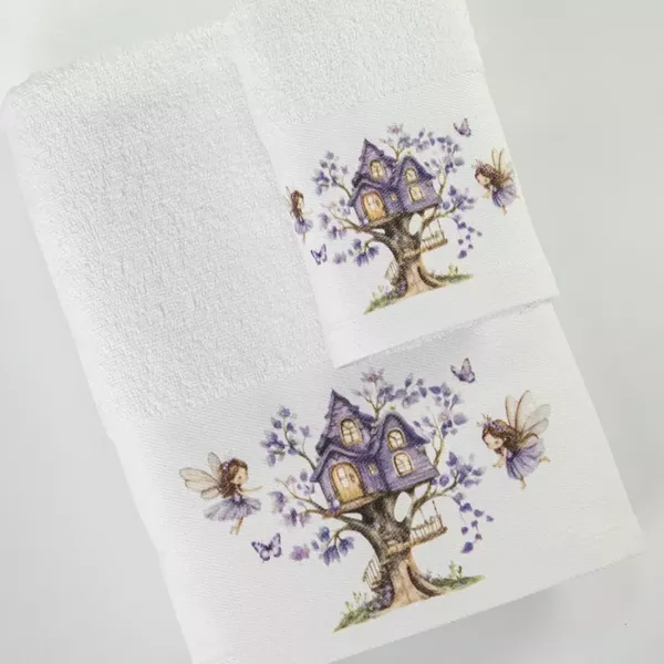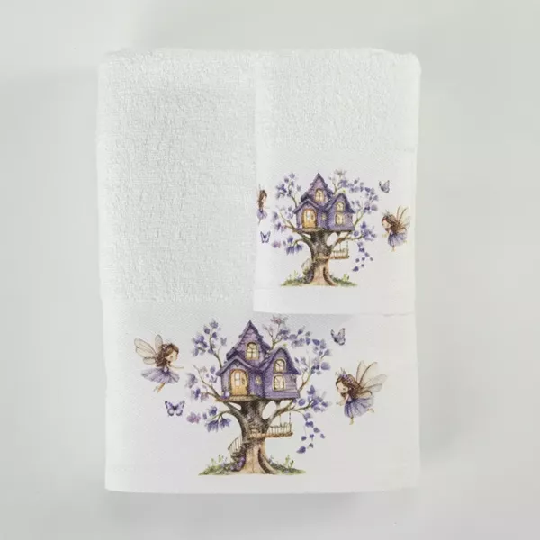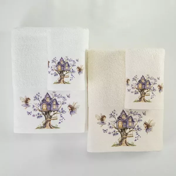 Σετ πετσέτες 2 τεμαχίων, μπάνιου και χειρός, από ύφασμα φροτέ πενιέ, 100% βαμβακερό, μονόχρωμο, εκρού, με ψηφιακή εκτύπωση, σχέδιο μαγικός κήπος.Διατίθεται σε 2 χρώματα.