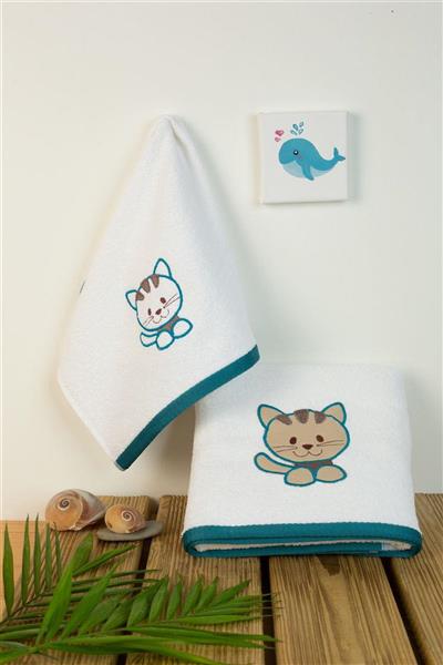 Σετ βρεφικές πετσέτες μπάνιου που περιέχει : 1 τεμάχιο πετσέτα χειρός διαστάσεων 30X50 cm και 1 τεμάχιο πετσέτα μπάνιου διαστάσεων 70X140 cm.Οι πετσέτες έχουν χρωματιστή υφασμάτινη φάσα και σχέδιο με κέντημα και είναι κατασκευασμένες από 100% βαμβάκερη πετσέτα 400 gsm, υψηλής απορροφητικότητας. Συσκευασία Δώρου Κουτί Πολυτελείας.