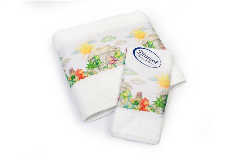 Πετσέτα Σετ 2 τεμ Με Ψηφιακή Εκτύπωση bebe Dinosaurs 311 30X50,70X140 White 100% Cotton
