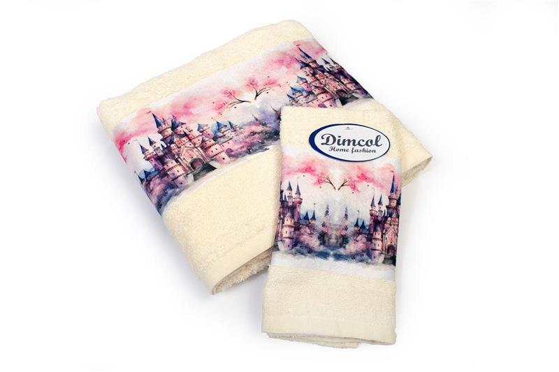 Πετσέτα Σετ 2 τεμ Με Ψηφιακή Εκτύπωση bebe Fairytale Castle 327 30X50,70X140 Ecru 100% Cotton