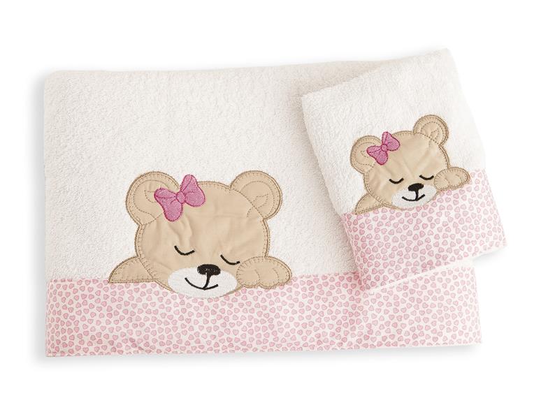 Βρεφικές πετσέτες με κέντημα και φάσα σετ 2 τεμαχίων που περιέχει μια μικρή πετσέτα 30Χ50 και μια ολόσωμη 70Χ140 κατασκευασμένα από αγνό βαμβάκι 100% 400 gsm υψηλής απορροφητικότητας -Συσκευασία Δώρου Κουτί Πολυτελείας