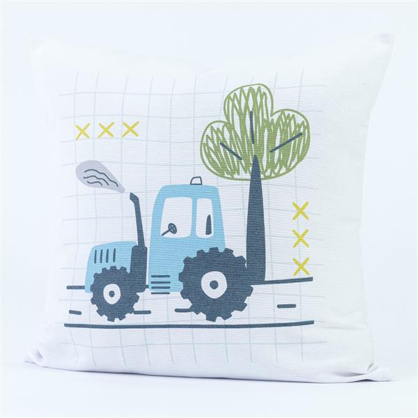 Μαξιλάρι φιγούρας από ύφασμα λονέτα, 100% βαμβακερό, με φερμουάρ και ψηφιακή εκτύπωση, σχέδιο τρακτέρ. (Χωρίς γέμισμα)