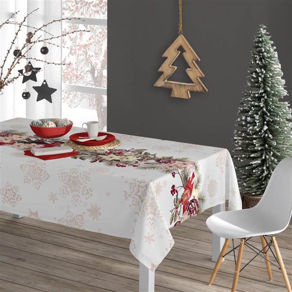 Καρέ από ύφασμα λονέτα 50% βαμβακερό-50% πολυέστερ, με εμπριμέ χριστουγεννιάτικο σχέδιο.