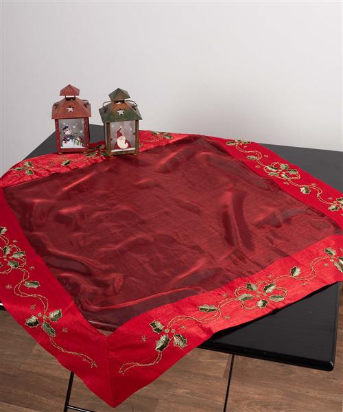 χριστουγεννιάτικο καρέ με τούλι στο κέντρο και κεντητή φάσα