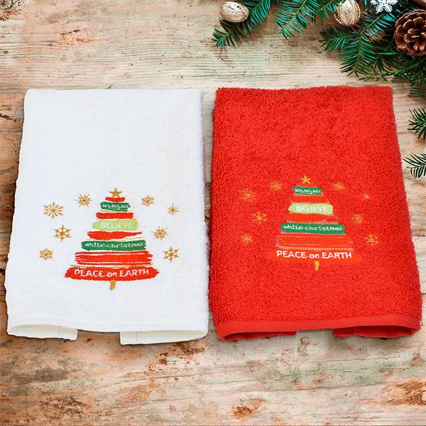 Σετ χριστουγεννιάτικες πετσέτες από την εταιρεία Lino Home! Φέρτε το εορταστικό πνεύμα στο μπάνιο ή και την κουζίνα σας, με το υπέροχο σετ πετσετών σε κόκκινο και λευκό χρώμα και όμορφο κέντημα με σχέδιο το χριστουγεννιάτικο δέντρο και μηνύματα αγάπης! Το σετ που αποτελείται από δύο πετσέτες χεριών, μία σε κόκκινο και μία σε λευκό χρώμα, δημιουργεί μια γοητευτική γιορτινή ατμόσφαιρα και μια νότα ζεστασιάς σε κάθε χρήση. Αφεθείτε στην απαλότητα και την ευχάριστη αίσθηση των πετσετών Baum! Τα τεμάχια που αποτελούν το σετ, είναι κατασκευασμένα από βαμβακι πενιέ 500gsm για μέγιστη απορροφητικότητα και απαλότητα! Διατίθεται σε όμορφο πρακτικό κουτάκι για να το προσφέρετε ως δώρο σε αγαπημένα σας πρόσωπα!