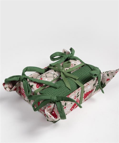 Σετ δώρου με δύο ποτηρόπανα μέσα σε ψωμιέρα